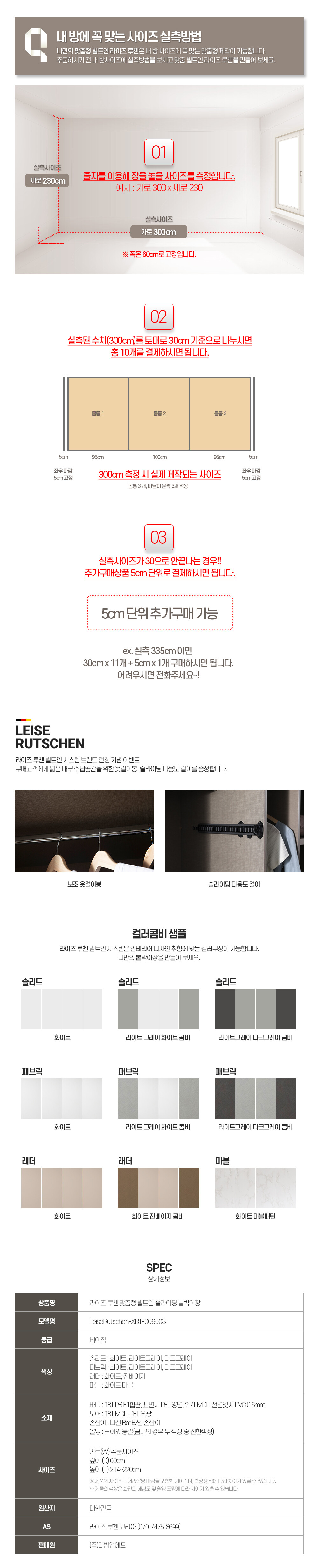 라이즈루첸 빌트인 시스템 슬라이딩 붙박이장(베이직)30cm